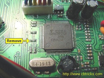 Locate and remove the surface mount resistor (R138) to the left side of the microprocessor. (As shown in the graphic above.) |