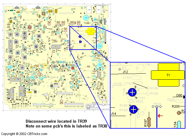 Talkback can become distorted if these radios have been "peaked," and there is no cure because the talkback just amplifies what goes to the RF section. Try adding a 470k ohm resistor from junction of C154/R207 to the junction of C187/R235 on the solder side of the board. This will also give you clean talkback on SSB and FM. Try different values of resistance to get the amount of volume you want. The less the resistance the louder the talkback will be. |