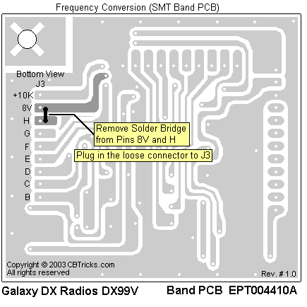 and remove the solder bridge from pins 8V and H on the bottom of the pcb
