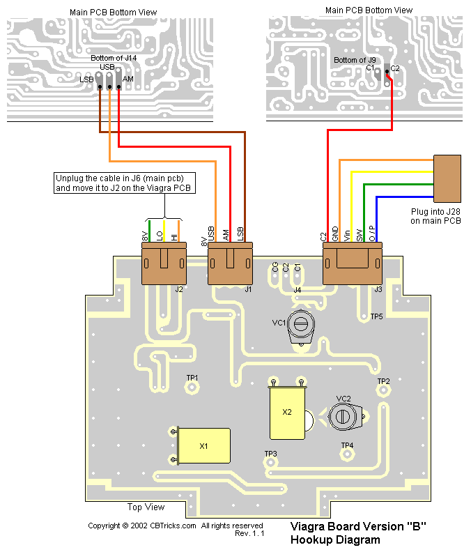 The following describes the installation procedure for adding the Viagra "B" channel modification PCB to the Galaxy DX949,DX959 and DX2547. Although this accessory can be added to any EPT06960Z Main PCB See note at bottom of page. First you will need