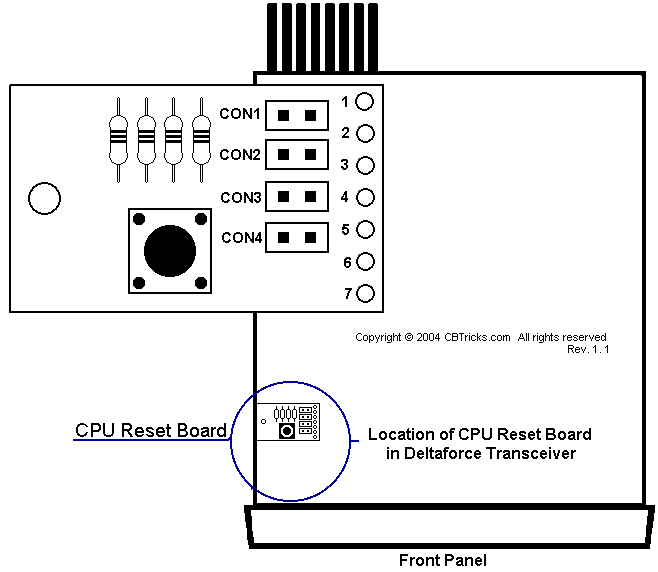 | 3. | Find the CPU Reset Board located near the rear panel of the radio (see diagram below). |