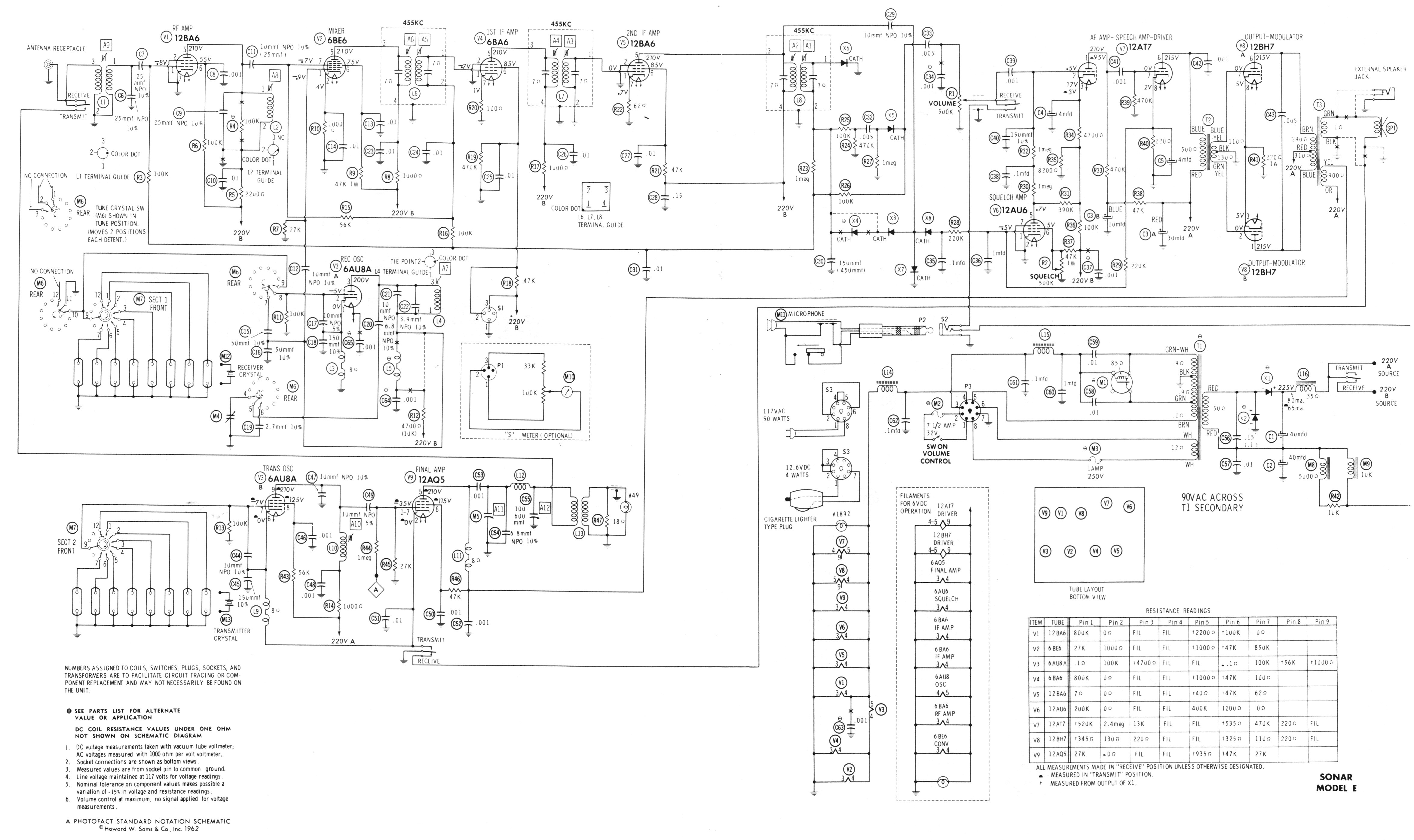 From Sam's Photofact Vol. #2 Sonar Model E (Revised) Service