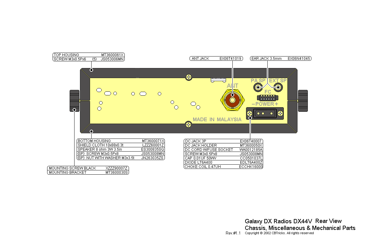 Mic Wiring Diagram Stock 1- Shield (Ground) 2- Yellow (Audio) 3- Red (Transmit) 4- White (Receive) Astatic (4 wire) 1- Shield 2- White 3- Red 4- Black Astatic (6 wire) 1- Shield & Blue 2- White 3- Red 4- Black Yellow NC Daiwa EM-500 Cobra CA Series 1- Shield & Black 2- Red 3- White 4- Blue Galaxy DC-521S (4 wire) 1- Shield 2- Yellow 3- Red 4- Black Galaxy CB-660EI 1- Shield & Black 2- White 3- Red 4- Blue Sadelta 1- Shield 2- White 3- Brown 4- Green Turner 1- Shield & Red 2- White 3- Blue 4- Black Yellow NC |