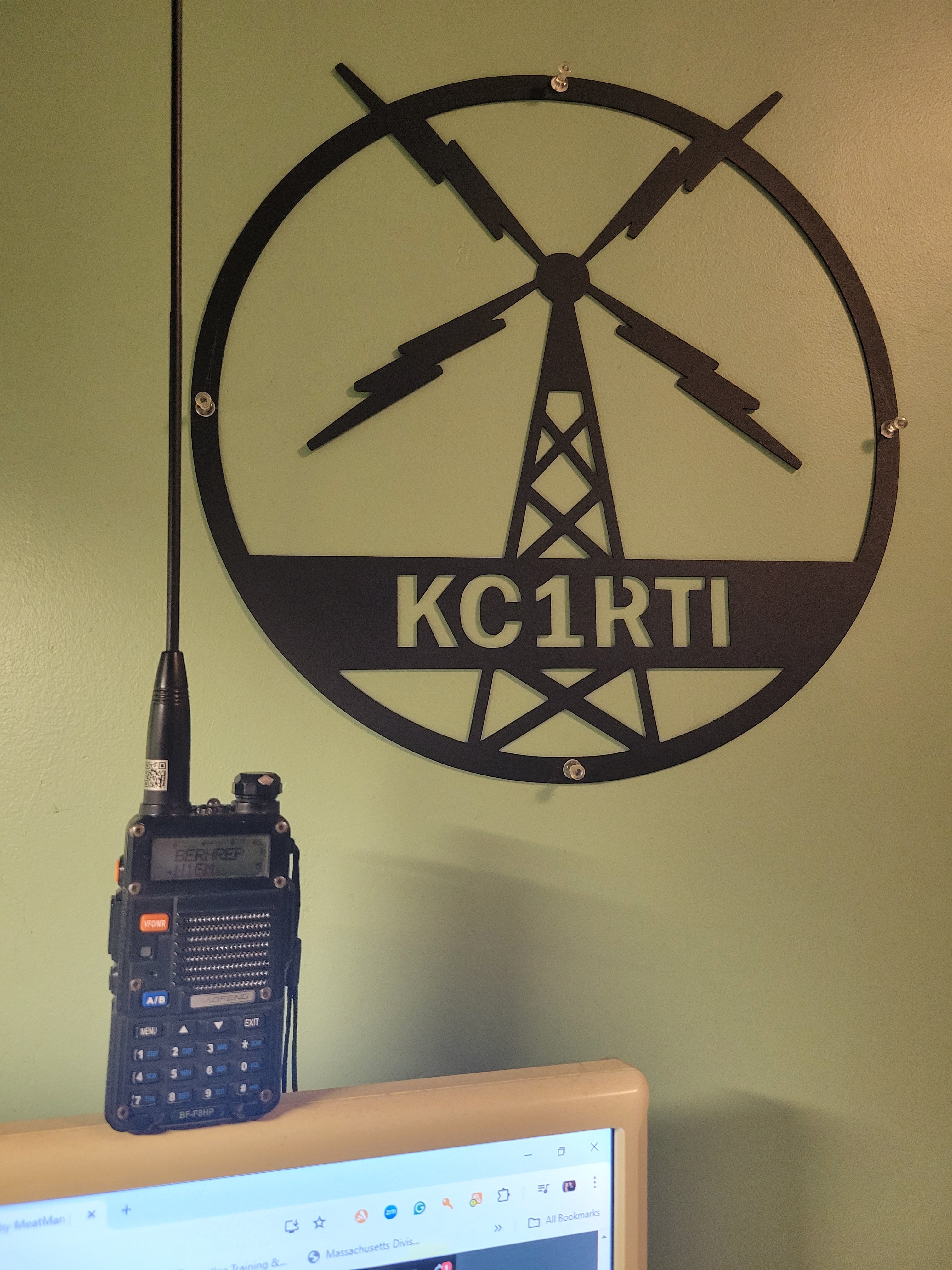 My trusty Baofeng BF-F8HP and my call sign 'sign'
