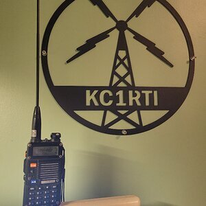 My trusty Baofeng BF-F8HP and my call sign 'sign'