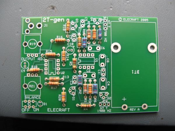Elecraft 2 tone generator with resistors completed.