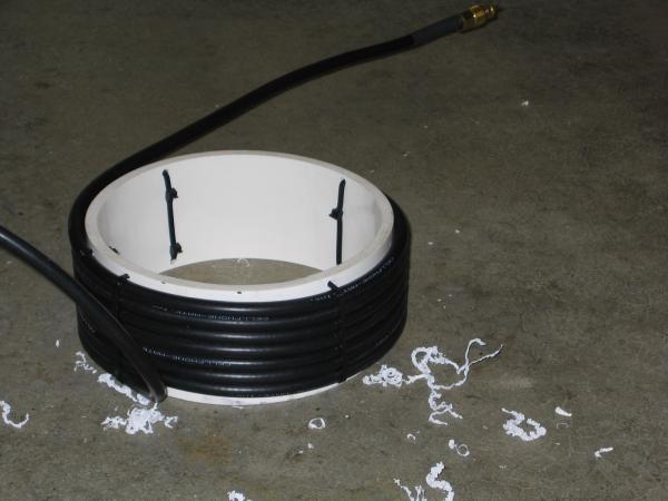 LMR-400 Coax, 8" diameter PVC about 5" wide or less, 7 wraps.