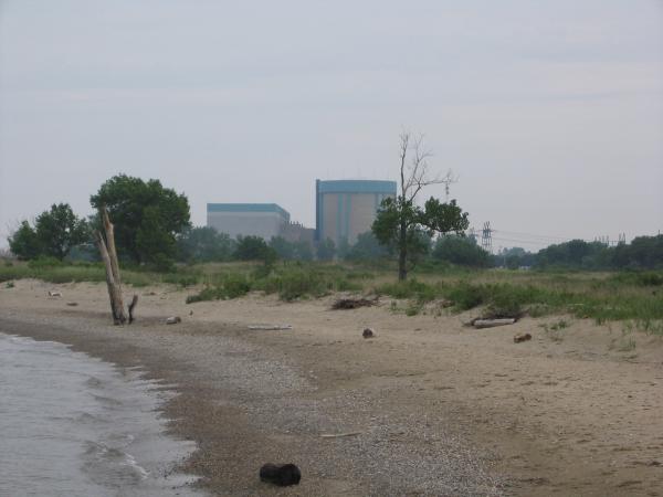 Looking south from the same location you can see the old Zion Nuclear Plant. They shut it down like twenty years ago from concrete faults to avoid a m