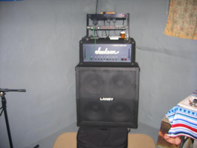 My pride & Joy: 50 Watt Jackson Tube Head with a 4 X 12 Laney Speaker Cab.