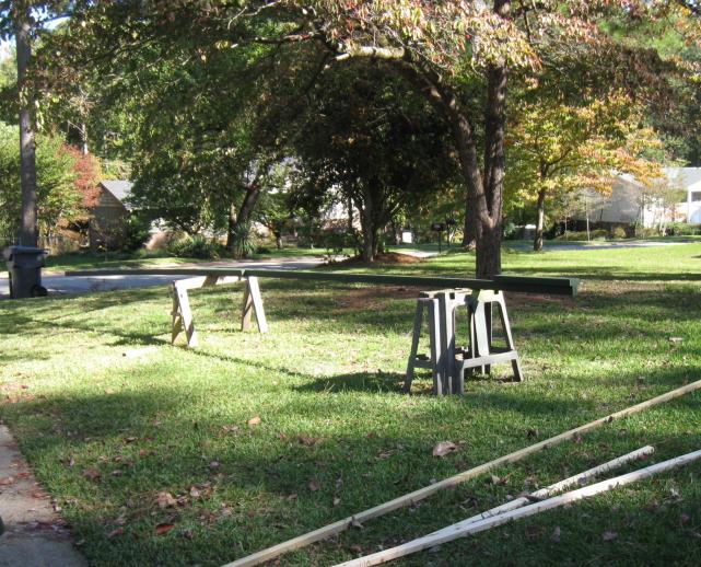 Paint dry on new antenna mast (replacing the one that was damaged during the storms in April). 28'-- its job is to hold up one end of my 80/40 trap d