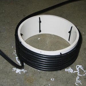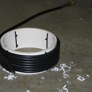LMR-400 Coax, 8" diameter PVC about 5" wide or less, 7 wraps.