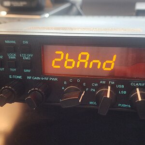 With the radio off, press the FUNC and EMG buttons, holding while turning the radio on. The display will show the following if it is in the factory default 10 meter setting: