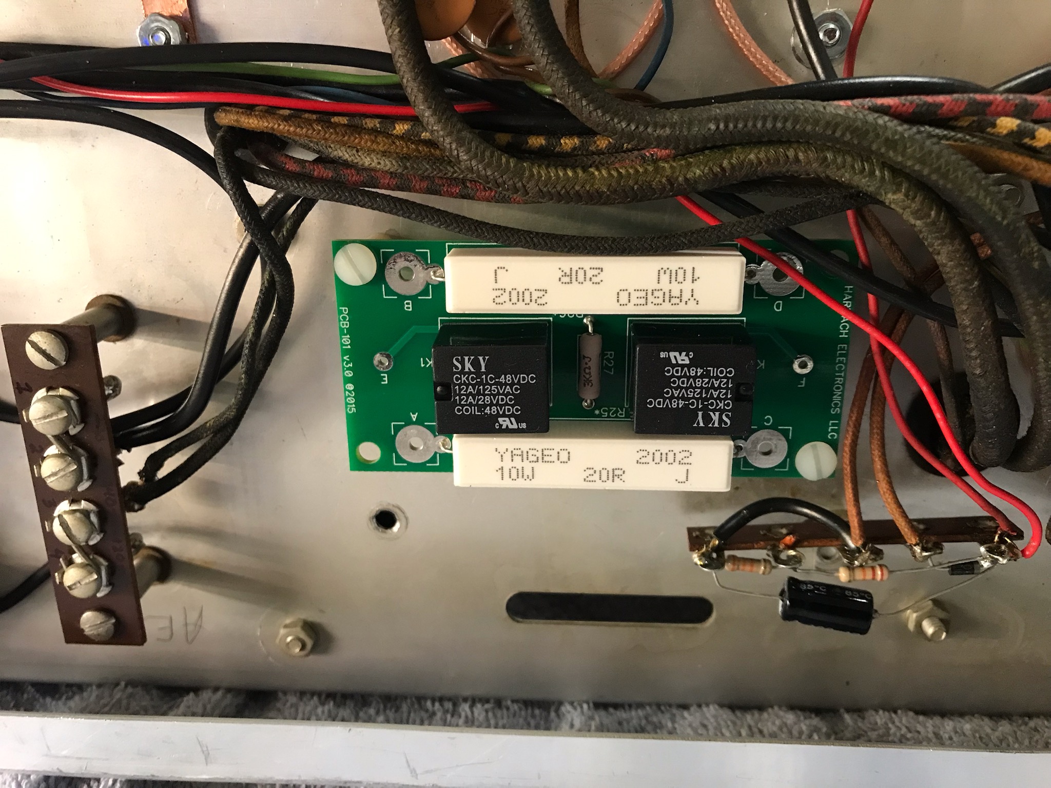 This is the area of interest for this portion of the project. This picture only shows 3 of the 5 input circuits but the modification is very similar for each band.