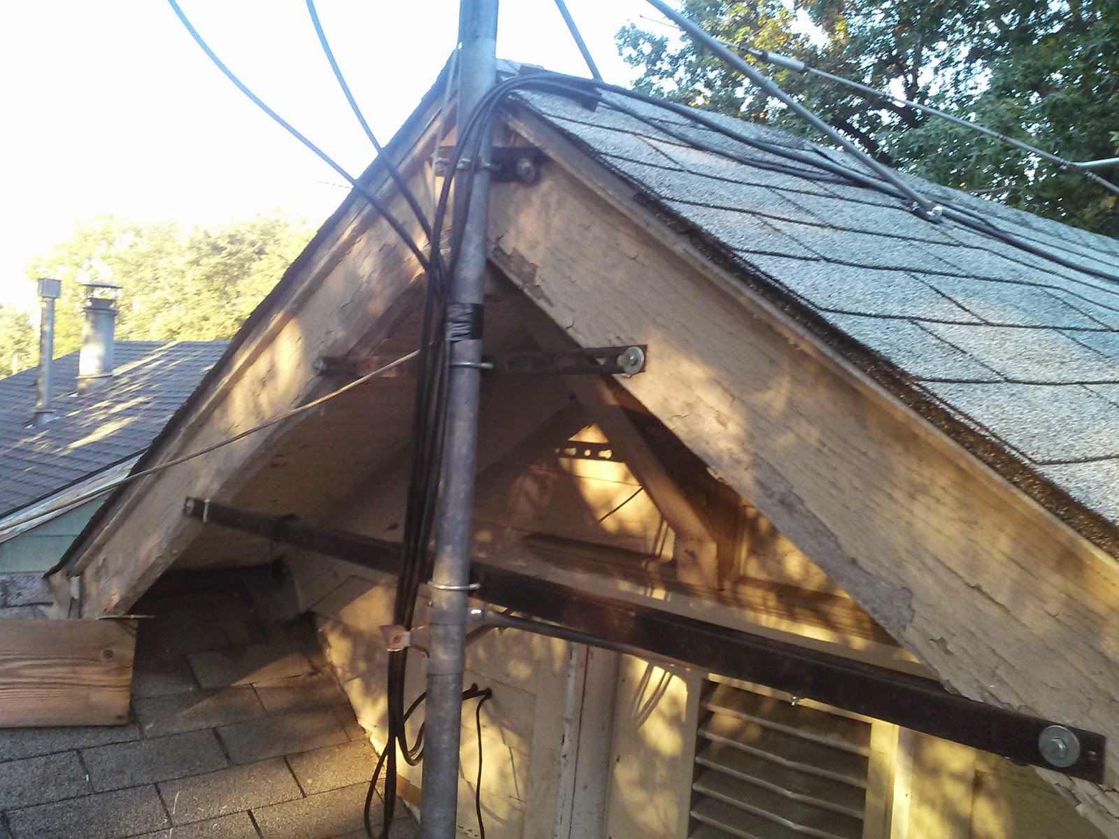 All of these are double lagged into at least one stud, with 19 lag bolts, 4 u bolts and 1 hose clamp... I dont think this antenna stack is going anywhere...