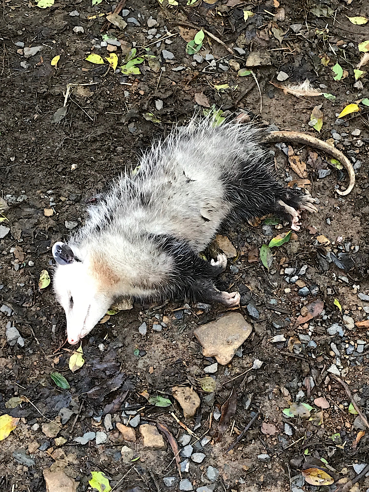 Possum this one was carrying my dang rooster off. My wife shouted out "drop my %@3*& rooster". Possum obeyed, dropped the rooster and walked off a few steps. Fell dead from a blast from my 16 gauge LeFever Nitro Special 16 gauge.