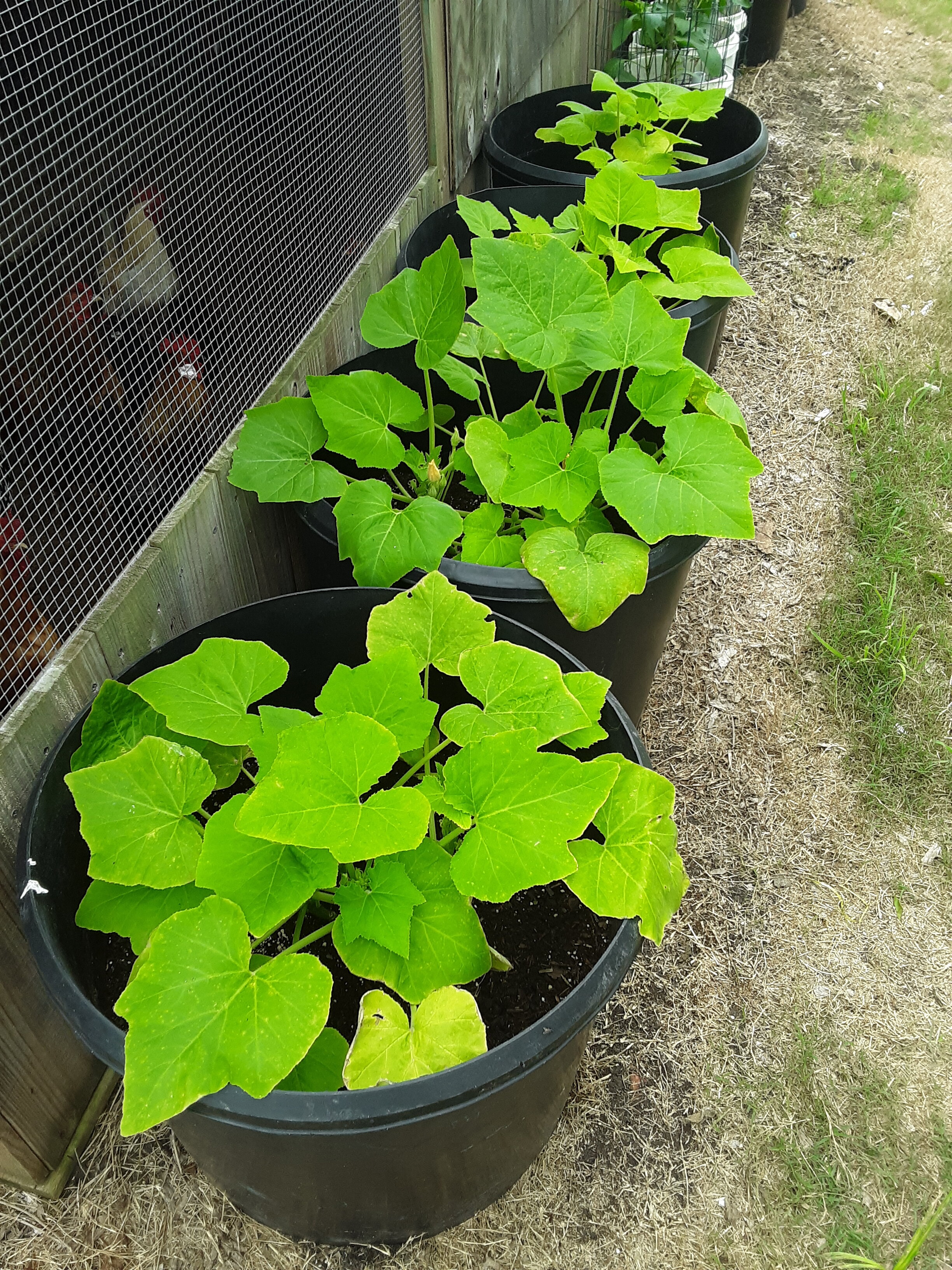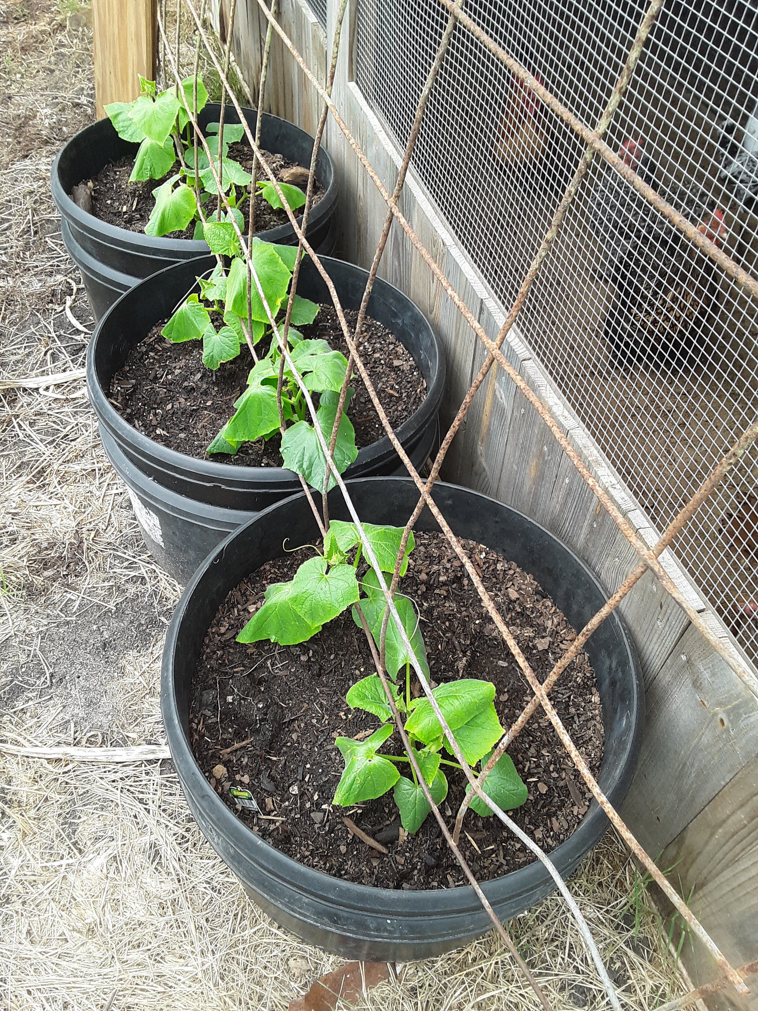 Cucumbers on other side coming along. Squash and cucumbers will provide needed shade for coop later.