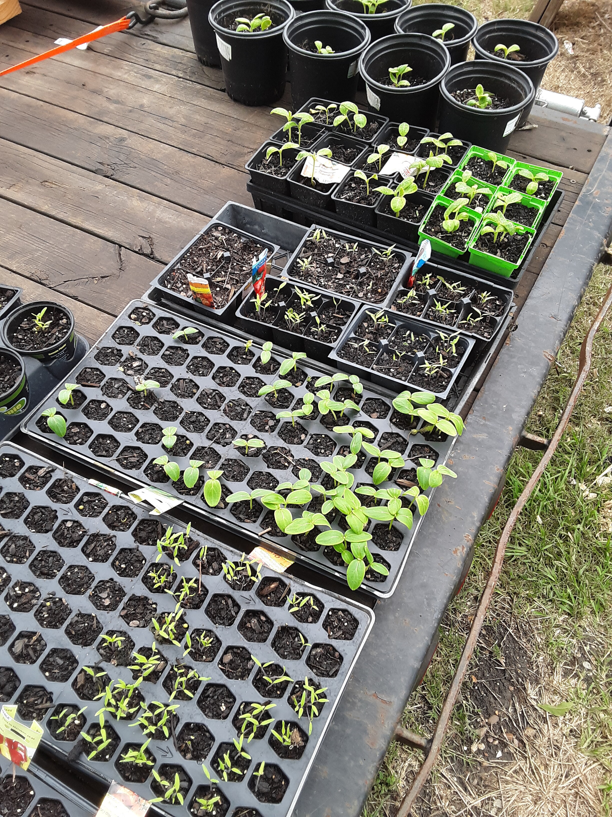 Seedlings coming up. Squash, tomatoes, cucumbers. Wondering if the bells, habanero, and wax will germinate (not included in pic). Starting green beans, jalapeno, and romas today.