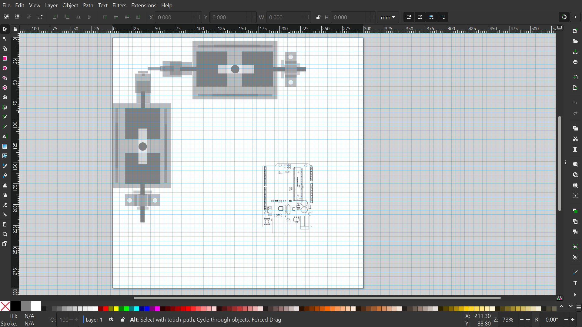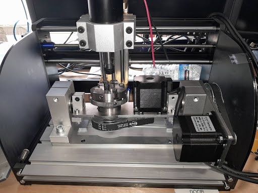 This will take some imagination. There are 4 stepper motors there (nema 17) and two er11 collets. One pair of stepper motors position the work. The other pair of motors rotate the work. The arduino uno n the lower right is to and for scale .