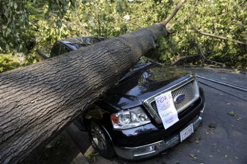 we just got power back this afternoon . a neighbor 1 block up lost his car when a oak landed on it .... had about a 20-25 ft pancake on the bottom . my antenna is fine , but the 1 1/2 conduit bent a little . according to the news we had 80 mph winds .