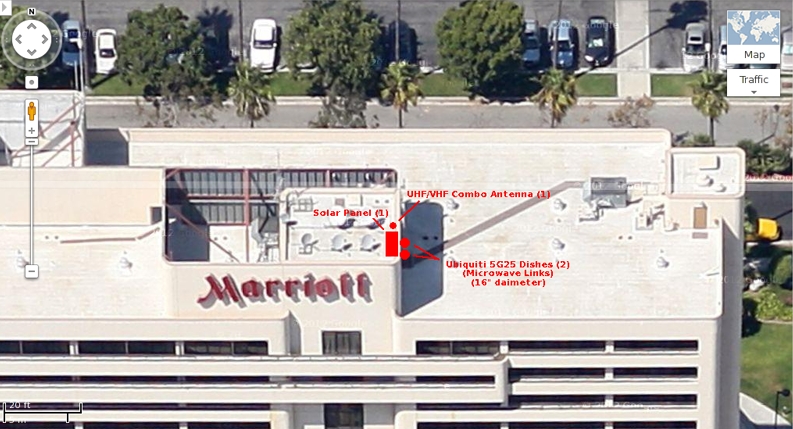 The proposed radio communications system would benefit tremendously from a location with a high level elevation. From our surveys, the roof-top of your Torrance Marriott Hotel facility located at 3635 Fashion Way, Torrance, CA, appears to possess ideal elevation and geographical elements, allowing for effective radio communications by the volunteer Amateur Radio operators in the local South Bay area. A system installed at your facility would provide emergency communications coverage to numerous cities within the South Bay area as well as linking to similar emergency communications systems, currently operating in the greater Los Angeles basin.