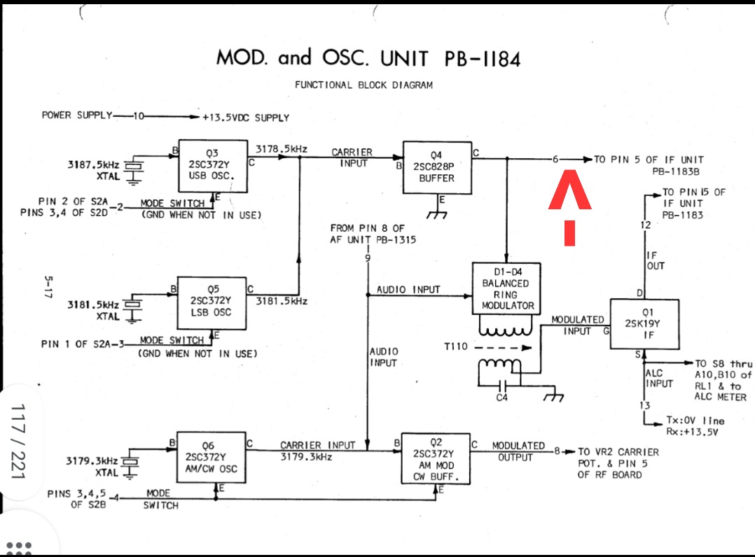 Nomad I appreciate the information. This is more than likely what is occurring. I verified that the crystals are on their respective frequencies at pin 6 of PB1184A. 3178.3 for USB and 3181.6 for LSB.