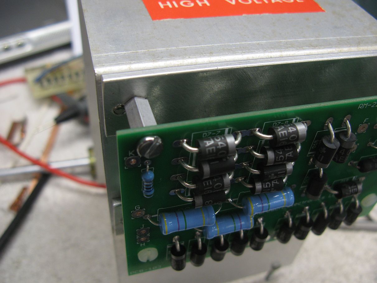 The rectifier diodes on your original board are the 'small' type, and should probably be upgraded to the larger 1N5408 type used on both the Harbach and W7RY boards. The leads are thicker on that part. You would have to drill out the holes to simply upgrade your factory board to the larger rectifiers.