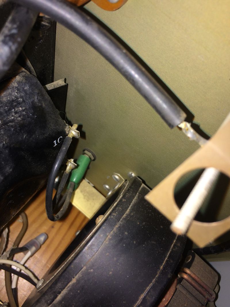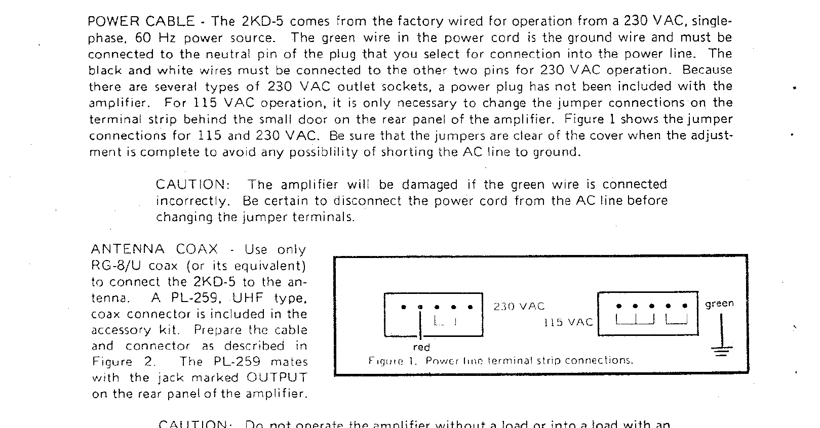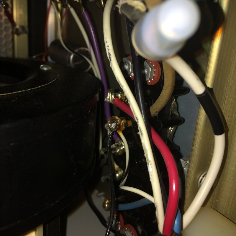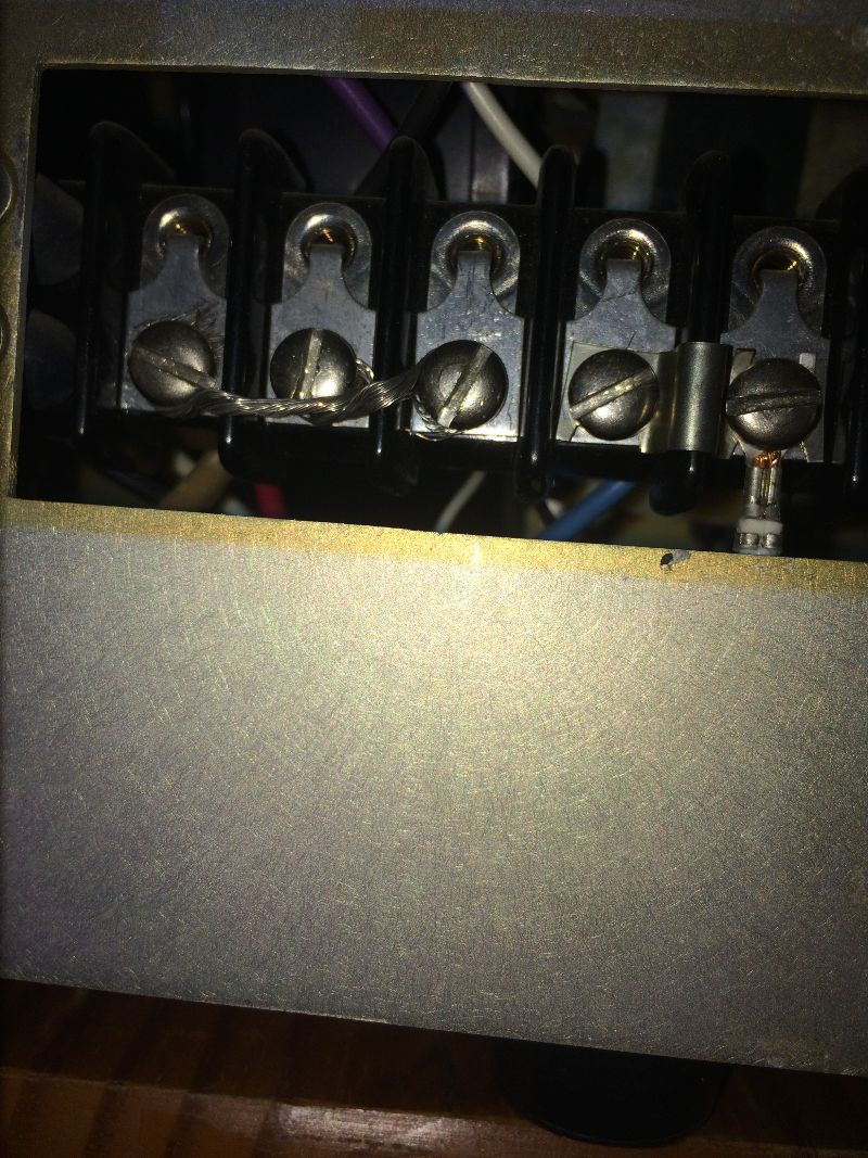I hope you had a good time at the hamfest Chris, I do have the three wire black white and green cord. Wiring the cords and plugs I have done many times. I also have the original manual with the voltage diagram. Where I was confused is with the power connector terminal board. As you can see in the photo the only thing that is visible is the striped wire wrapped around the three screws.That is what had me confused. That's all that was visible to me. The three cord wires were not there to change around. After I flipped it on it's side over the weekend. It was clear to me why they were missing, For whatever reason all three cord wires are soldered to the back side of the terminal board. Go figure, I will post pic's later on today. One other thing. I went to switch from cw to ssb mode with amp on and the hv meter went from 24000v all the way over to the right?