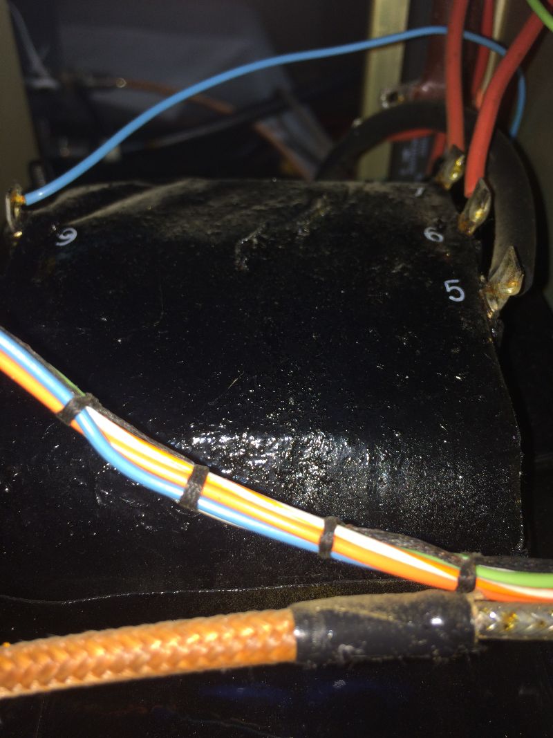 Here is the mess on the back of the power connector terminal board, According to the Peter Dahi Site, There replacement transformer is P/N FDN-7497, That matches the numbers on the one inside my amp, So someone replaced it. But did not bother to wire it up correctly.
