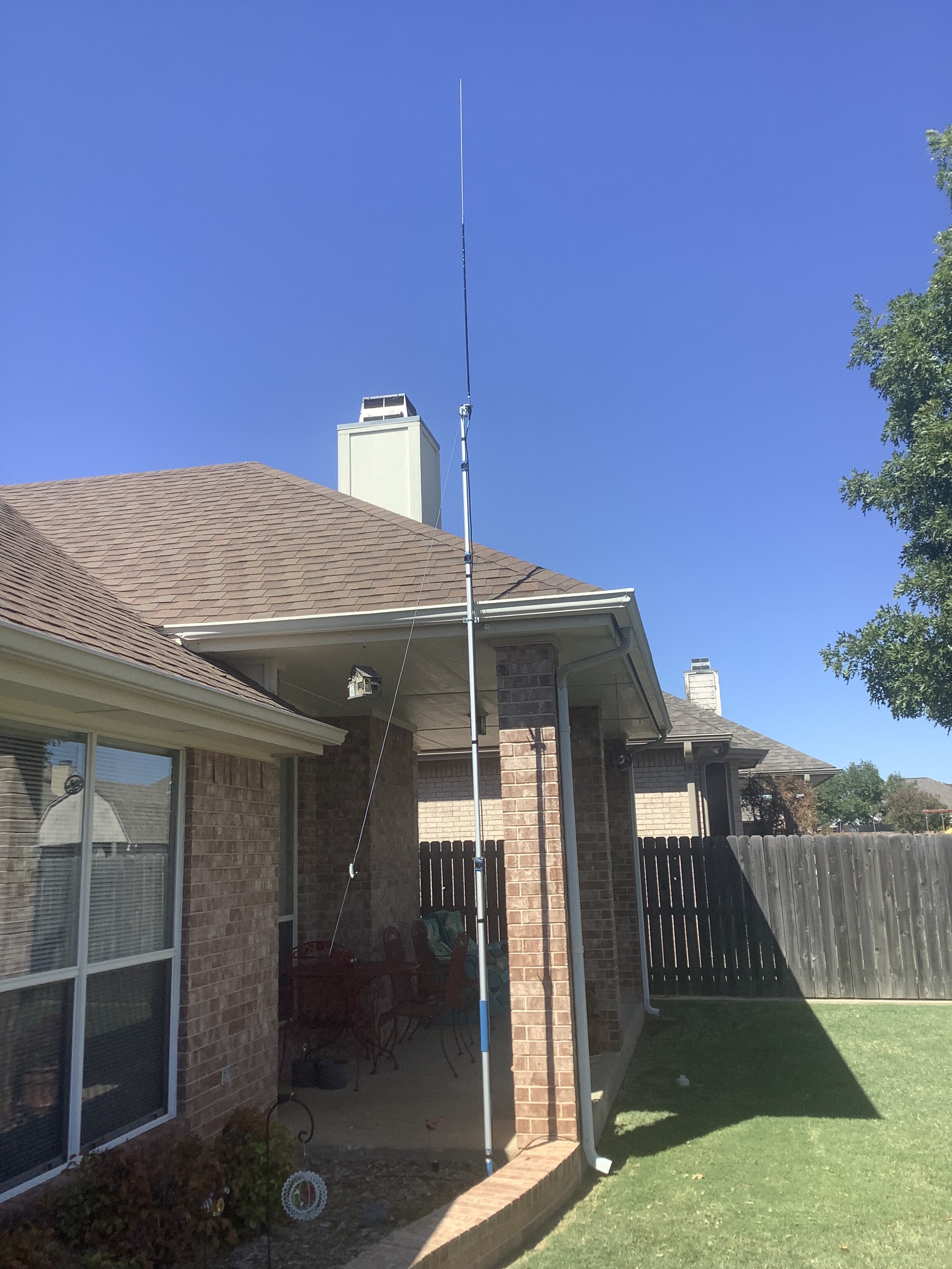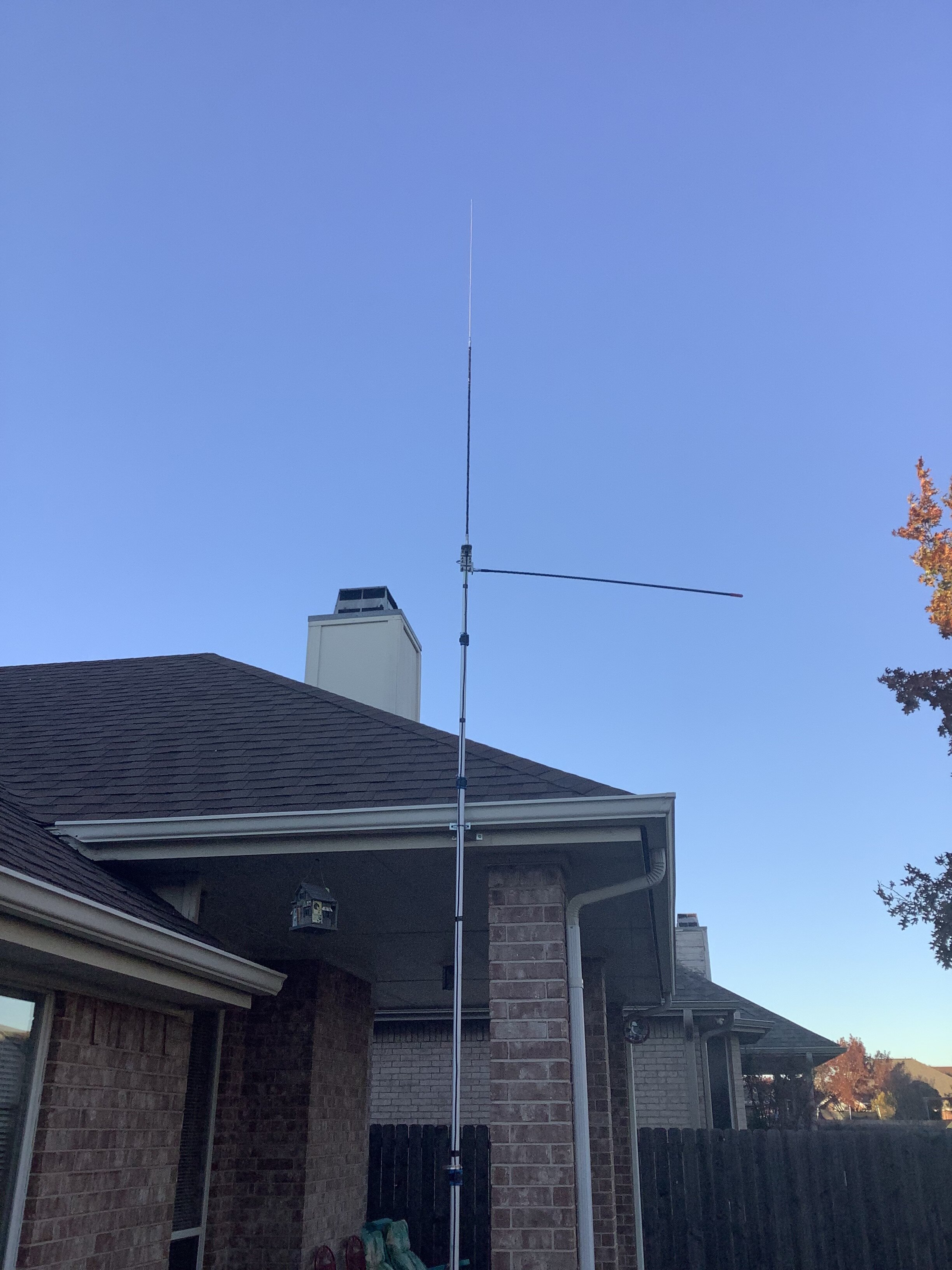 Ed, the vertical is a 10 meter hamstick. With the steel whip pulled out all the way, it works great for 11 meters. Coupled with the Firestik, it makes a terrific CB base antenna. Works better than it did with the wire radial.Jim, what antenna are you running on the top there (the vertical one)?