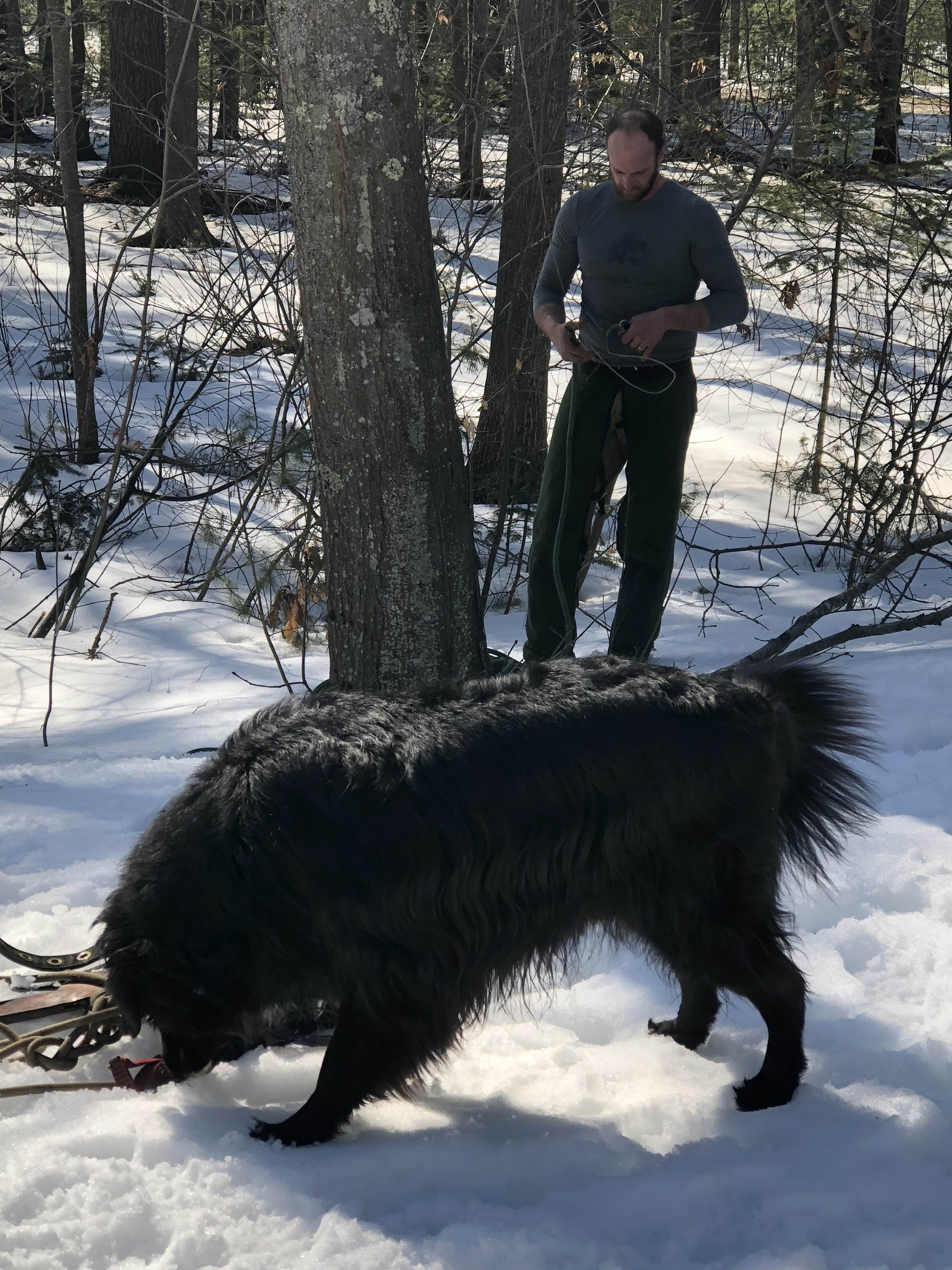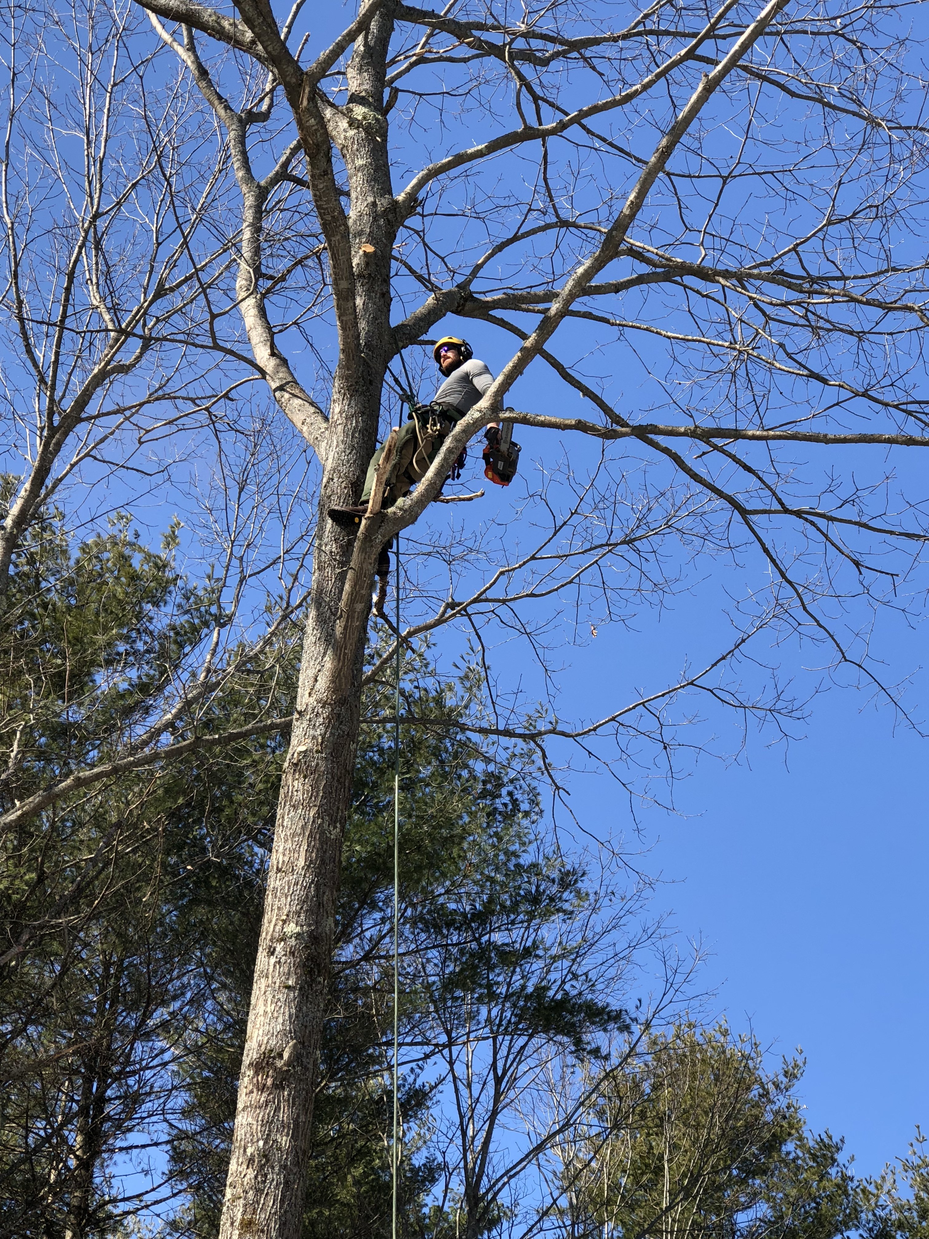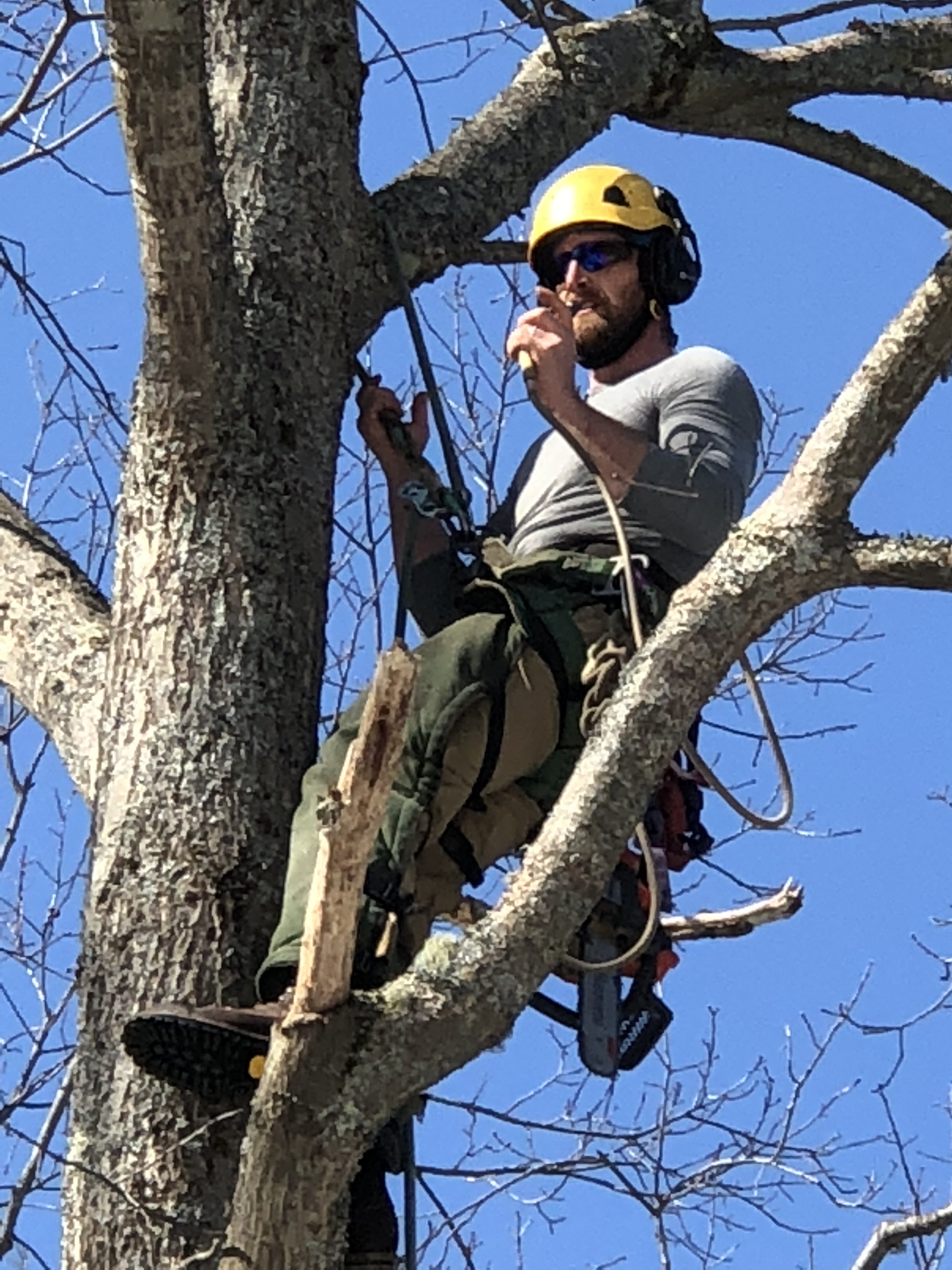 Finally got the tree guy over to get the hoisting tackle placed in the trees for the dipole antenna. Went pretty smoothly, with supervision from my noble dog, Denver. Once this Nor' Easter passes through this weekend, I'll start getting the final stages of the station set up. Looks like he got the tackle up about 55-60 feet.