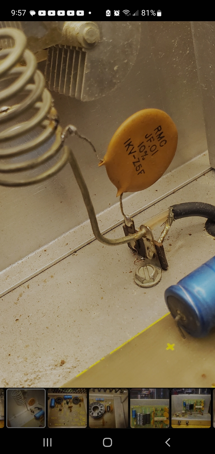 I wonder if that disc cap took a hit when that tiny wire at the bottom was shorting it out ? Would that cause this situation?
