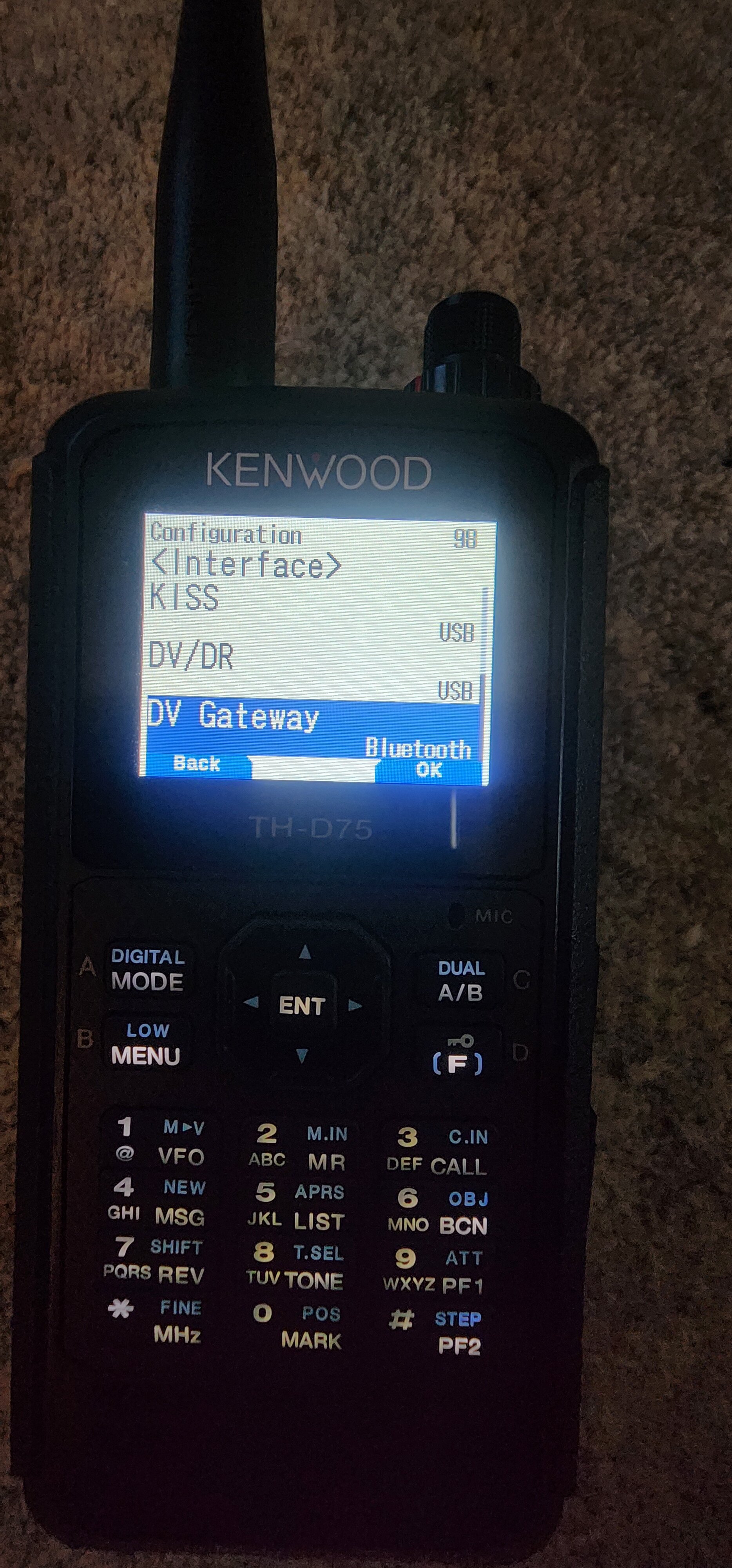 A major new function is the ability for the radio to work with a "DV Gateway" via USB or Bluetooth. In short, this means you can use a phone, tablet, or PC while interfaced to the TH-D75 to work D-Star over the internet without an additional RF hotspot. I tested this feature using the app "BlueDV Connect" with my Samsung S22 Ultra using Bluetooth as the interface. Setting this up is pretty straight forward: First you pair the phone/PC with the radio (the default bluetooth device name is simply "TH-D75". You need to set the "DV Gateway" setting to "Bluetooth" in the radio's "Interface" menu section: