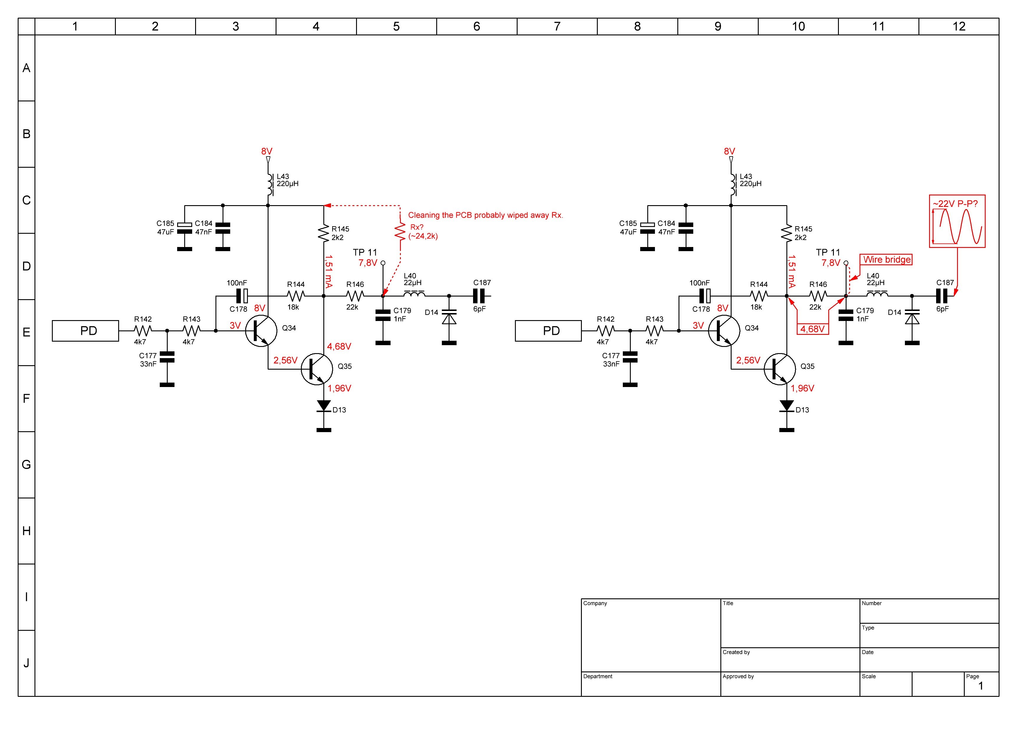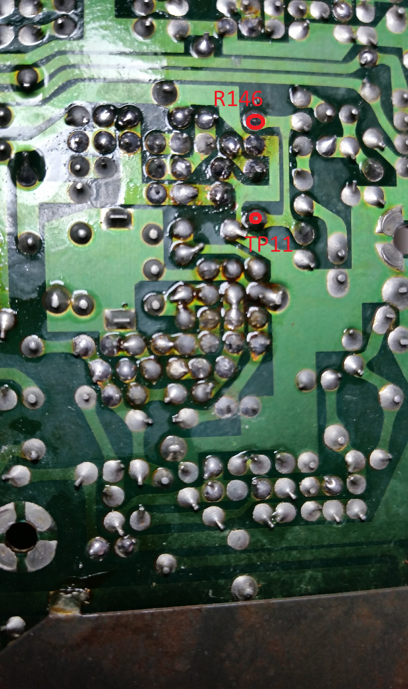 I was thinking about the rectified RF too but 7,8 volts RMS? I Really have a hard time to see that happen though. Good to see that you now have 4,68 volts on both sides of R146, but sadly still 7,8 volts on TP11 which seems to me, IMHO, impossible unless the wire you soldered is in the wrong place, IE not at TP11, R146 or the wire is not in contact with the TP and if so ... how can it still be 7,8 volts?