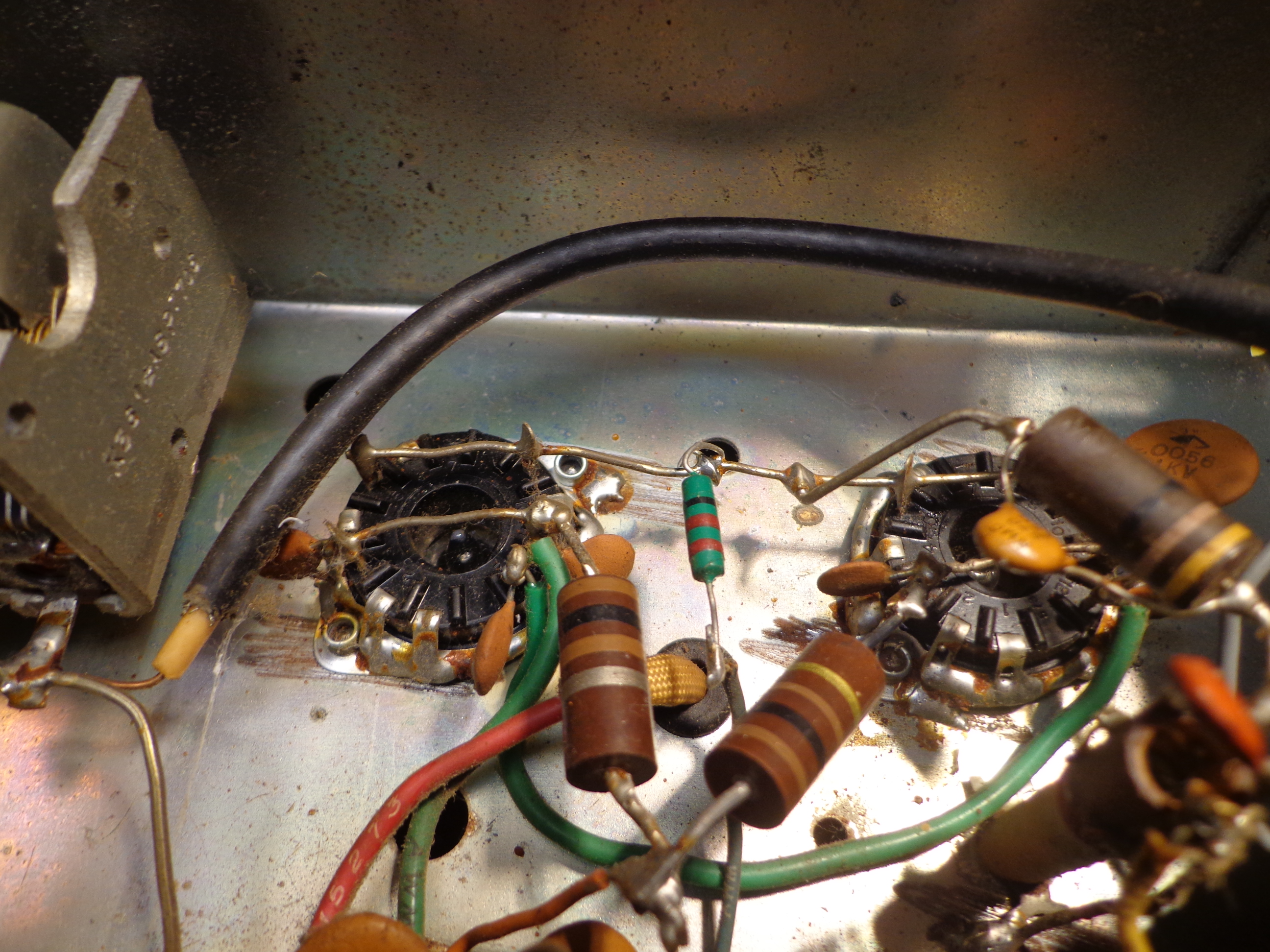 This one has 2 M2057 in it. The disc cap is 270pf. I put a 100 ohm resisters too pin 3 & 11 on each tube. original 2.JPGDSC00800.JPG