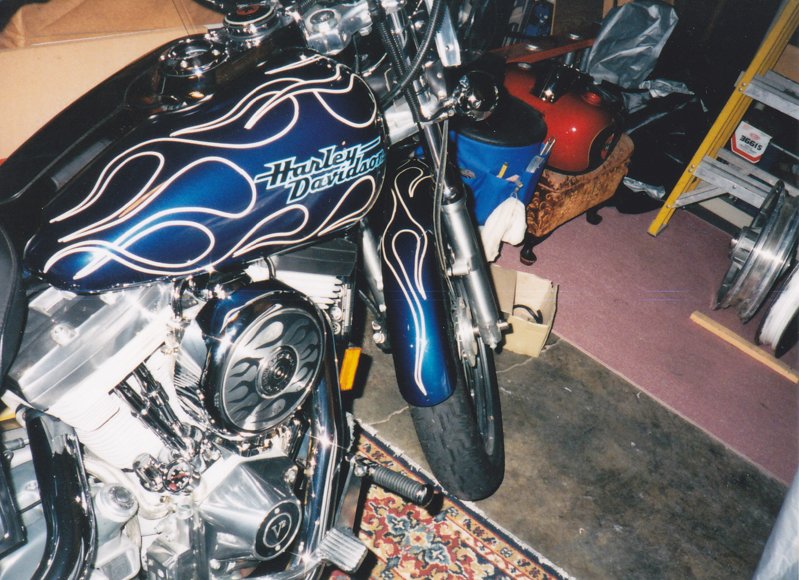 Late night - laying out a flames for the next day's paint job (cir. 1999)