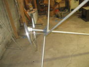 I got all my ground radials straightened out, which was quite time consuming cause I wanted them about perfect. They were pretty bad. The outer piece of one radial needs replacing as it was broken in two. I built a matching coil similar to what is on a Sigma 5/8 wave base. I used a piece of Aluminum flat stock that is 1"X 1/4"X6'. I just have to figure out how I am stabilizing the radiating vertical and it's ready to go up.