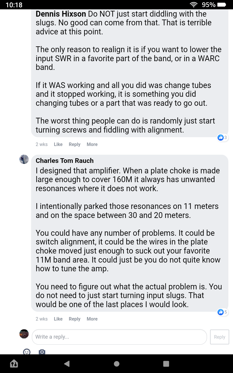 Now onto another completely different subject regarding the input impedance of your current amplifier. If nothing is really wrong with your amp buy a LDG ProII tuner ($179ish) to match your radio to your amplifier. As someone mentioned it might be a good time to part with your current amp while you can make some money and before you let the smoke out. I’ve read your thread but I can’t decipher if your SWR issue is new or if it’s something you just noticed.