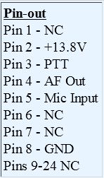 To clarify, right now I have two 1/8 stereo jacks wired to the 24 pin connector that's plugged into the back of my radio. The ground wire from both of the jacks are wired to pin 8 (Ground) of the accessory plug. The left channel wire of the jack for audio out of the radio is wired to pin 4 (Fixed level audio out). The left channel wire of the jack for audio into the radio is wired to pin 5 (Transmitter MIC amp stage). I use two 1/8 to 1/8 wires to connect the jacks on my little wiring harness to the jacks on my sound card. With the exception of the Signalink that also has a connection to pin 3 for PTT, my wiring is identical. Yet it does not work.