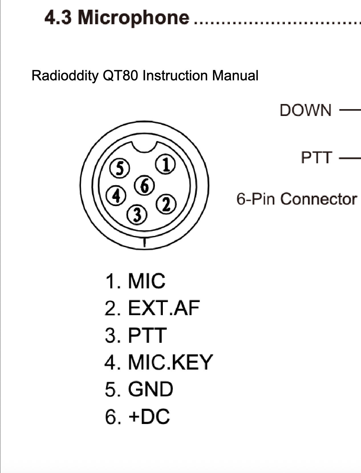 Somebody help me out. Here is the Mic wiring from the QT80 Manual. Unclear is Pin 4. wtf is Mic Key? For Cobra 4 Pin matchup would RX (black) go to Pin 4 ? View attachment 73723