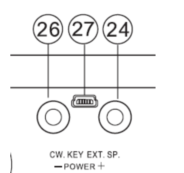 This is an all mode radio, as evidenced by the mode knob on the front. There is an 1/8" CW input on the rear, next to the speaker output and micro-USB, which is used for programming: