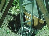 In the very bottom of the hole i put in one bag of stone dust, droped my first section in with a friend of mine, we braced everything up to make it plum and level aswell as laying a grid of chain linked fence in the hole 4 inches above the stone dust. We also drove 3 3 foot by 1 1/2'' pipes on an angle to create a little more "bite" and tied that in with the chain link and tower section.