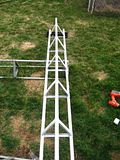 During a week i slowly started doing some refurb on it cleaning all the surface corrosion with a wire wheel, after that was all done I used tremclad galvanized metal white primer and aluminum colored paint , roughly around 6 cans of primer and 4 of paint. all of the tower section's got 3 coats of primer and 2 coats of paint.
