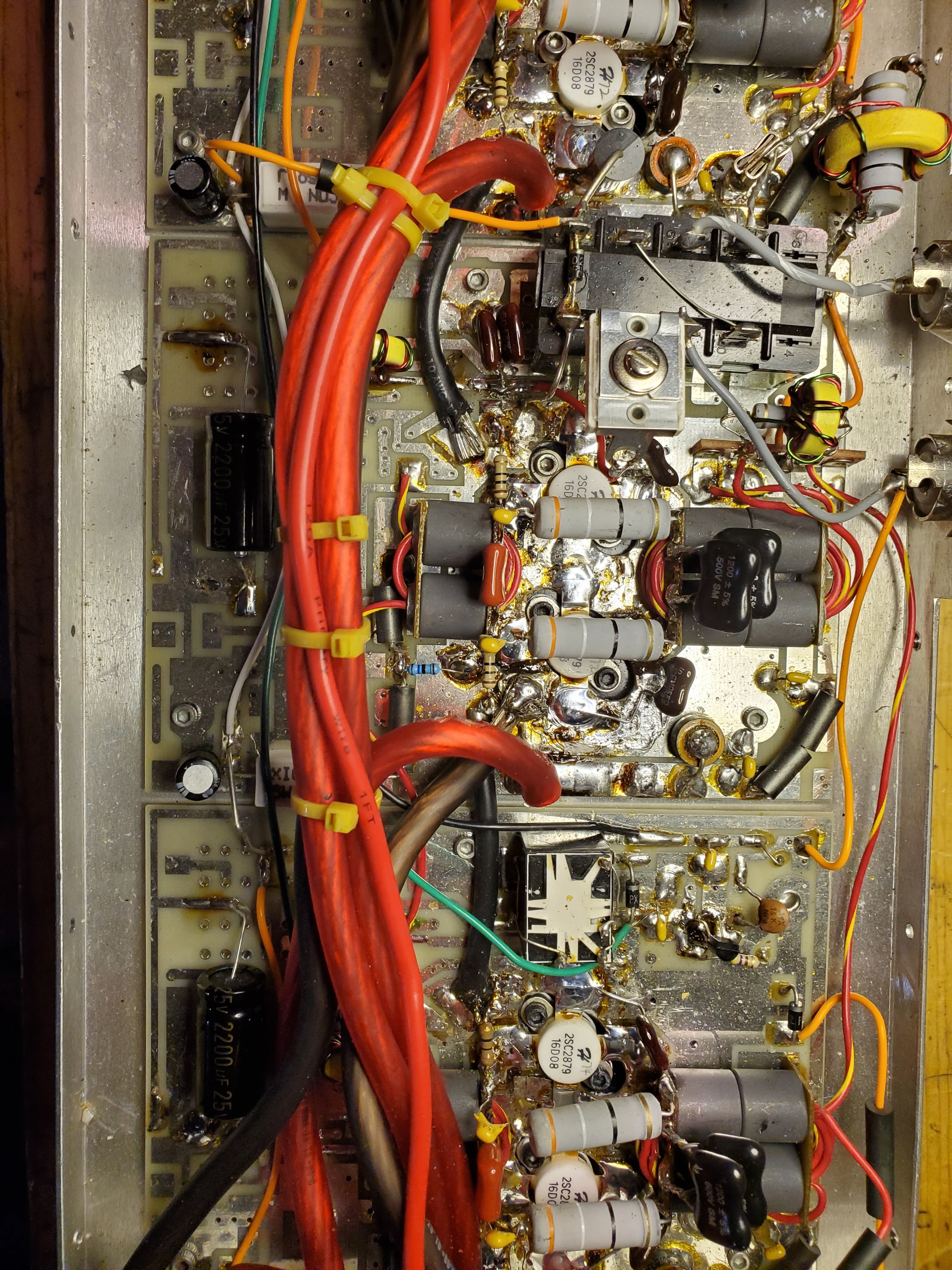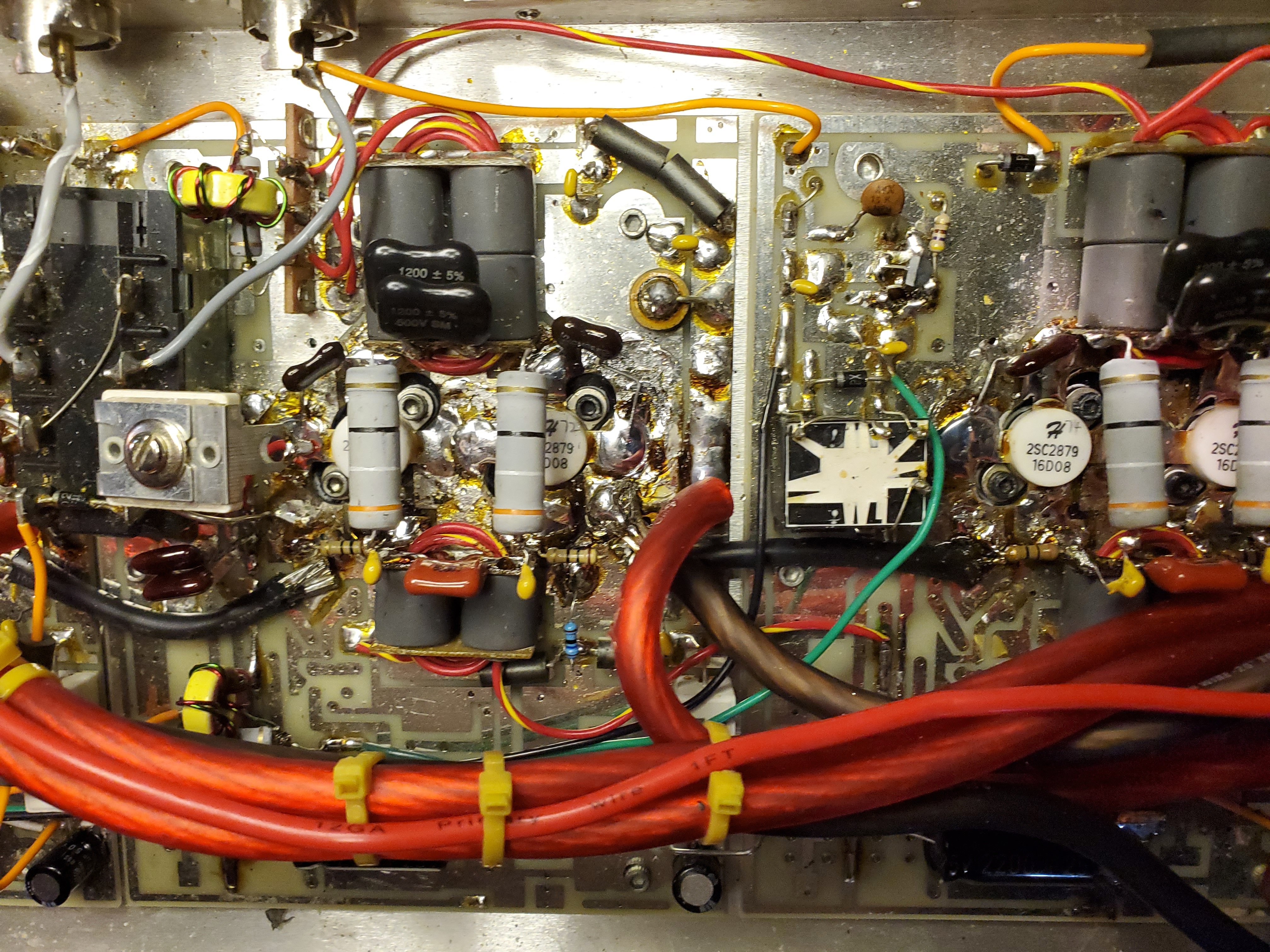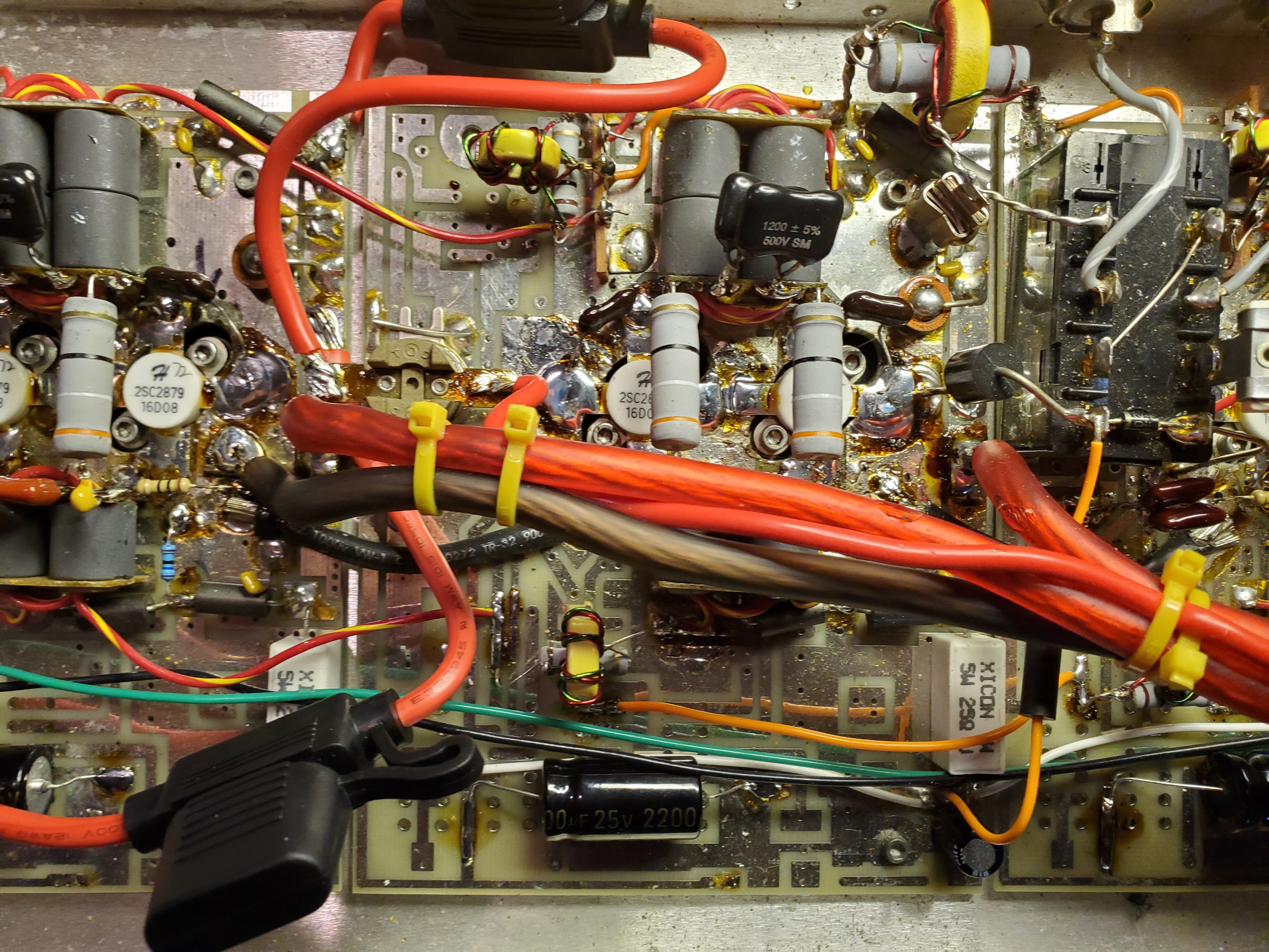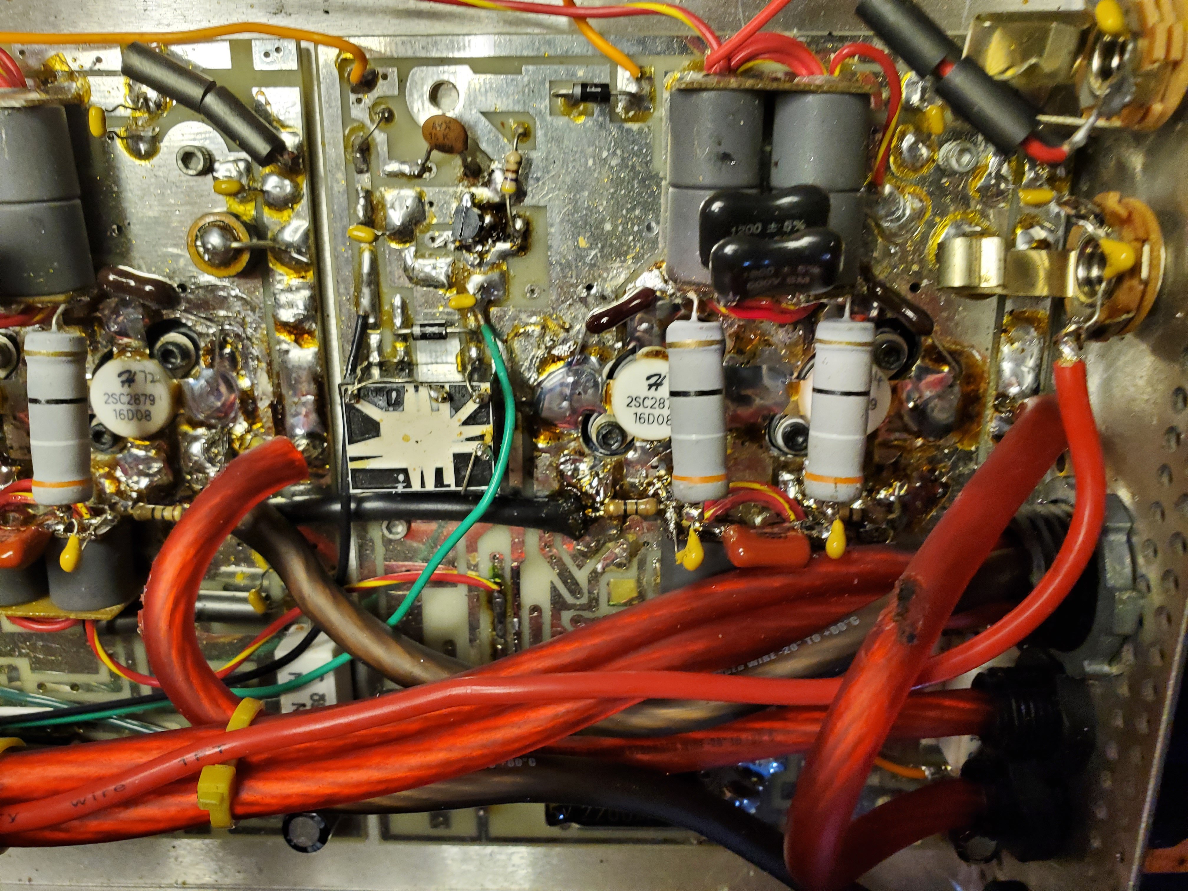 Alway, always, when replacing the power transistors, always replace the 10 ohm and the 1.6 ohm bias resistors.....They can be bad even without looking burnt.
