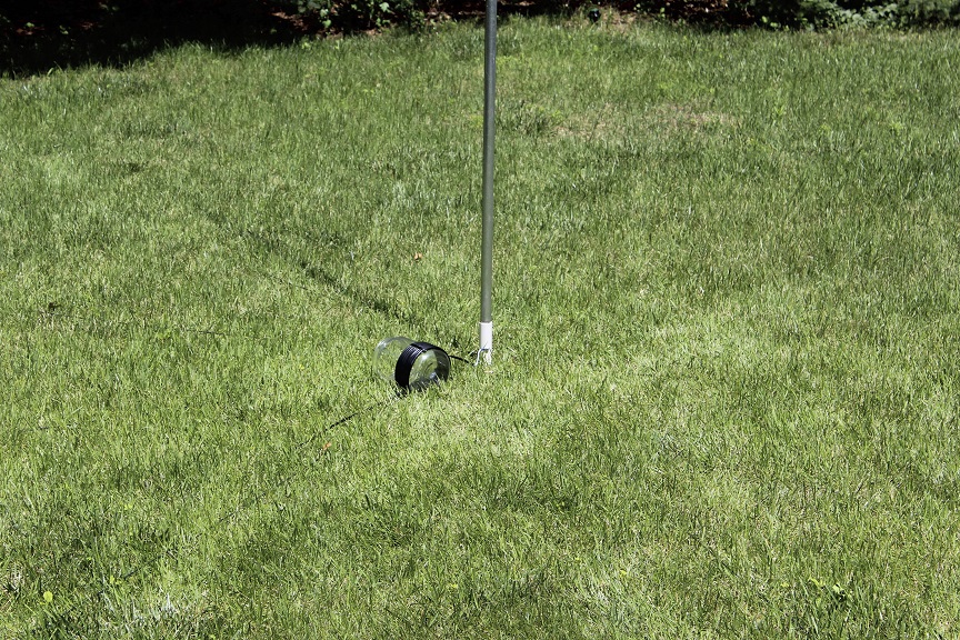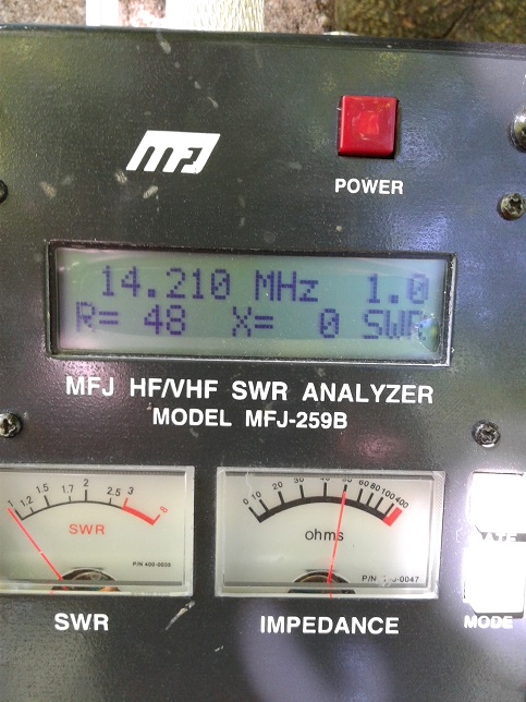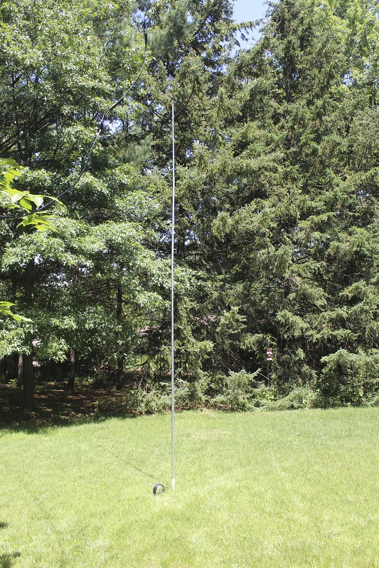 I have this week off work and while cleaning the garage yesterday I found a bag of aluminum tent poles I picked up at a yard sale a few years ago. I got the bug to build a ground mounted vertical for 20m. But, I was only going to do it if I had all the stuff I needed without buying anything. Turns out I had to buy a $4 bag of ground cloth staples to anchor the radials and coax. Big deal :)