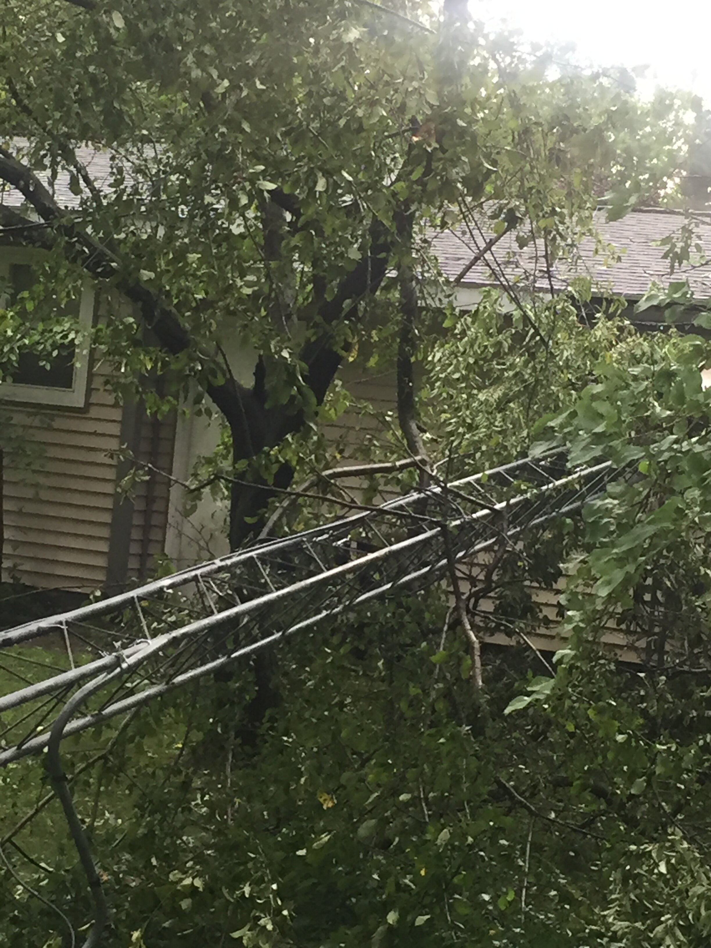 Had a bad storm hit our town a couple weeks ago,, 80+ mph straight winds they called it, and the neighbors tree came down on my garage roof and Tower,