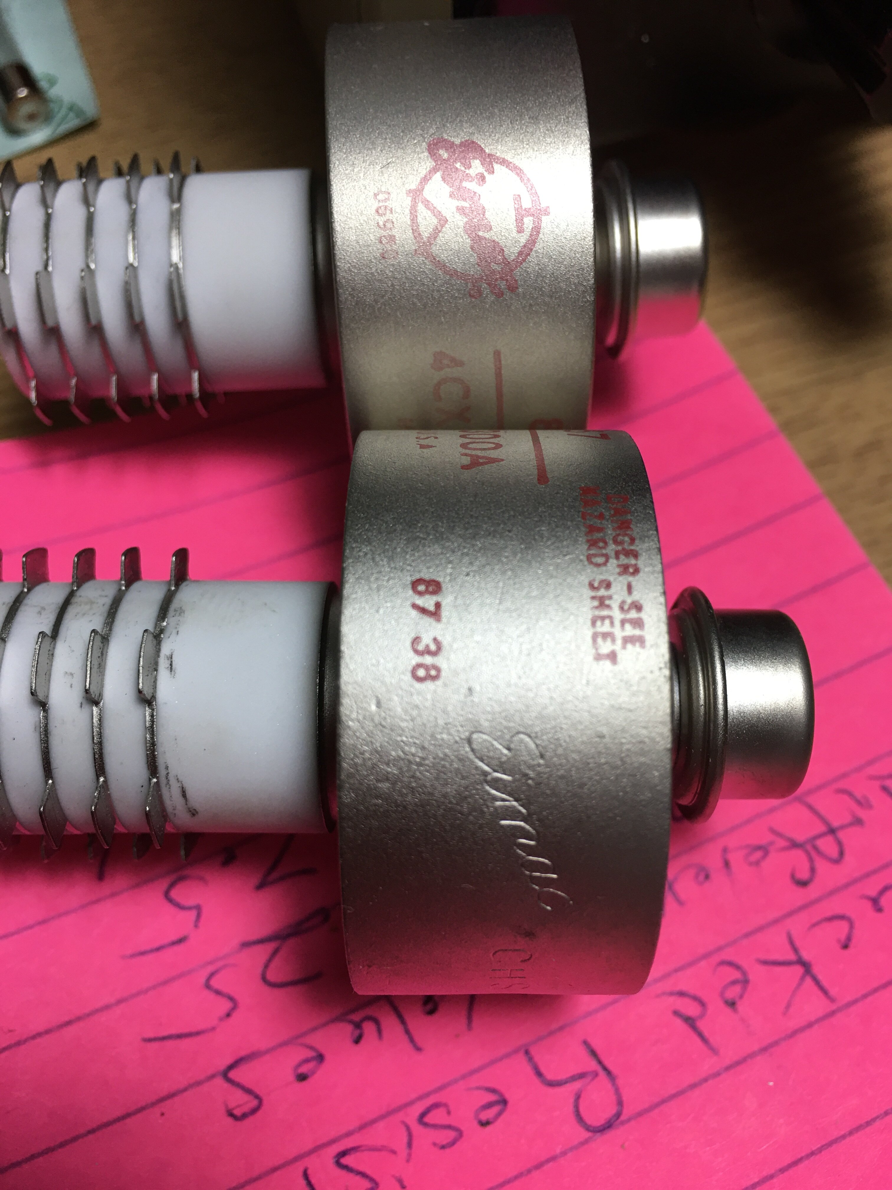 I got the volts & currents squared away. About to install two “new” 4cx300a I got from 2 different eBay Sellers. I used an old pair of 300y's to do rough tuning.