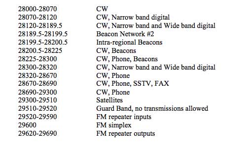 You guys keep forgetting that there is a world outside of theUSA that does not follow USA rules and regulations. We can run any mode on any frequency as long as we meet bandwidth limits. Basically wh have a 6 khz bandwidth limit on HF except 30m which is 1 khz. I can run ssb on 28.003 if I want.