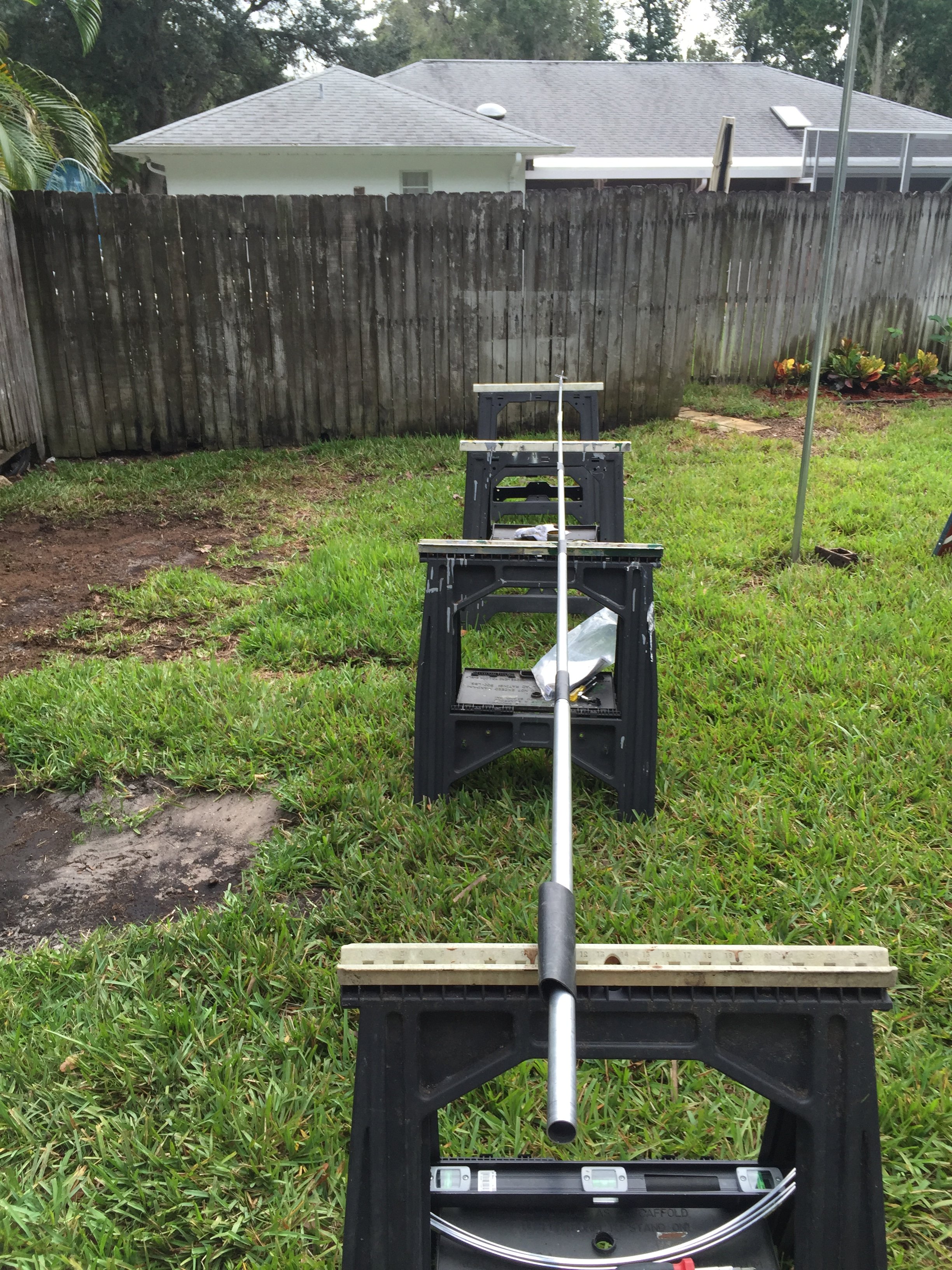 Okay the vector 4000 is up. Need to get analyzer on it and re adjust the gamma match a bit. It shows at the moment on channel 1, 1.1:1, and 40 is 1.2:1. I know, I know it's good, but I want it best it can be and I know it's got to be adjusted for where I talk more which is upper part of 11 meters. Anyway here are a few pics. Heat shrink used on all connections as well as no-ox. Antenna went together easily. Adjusting it is a bit harder without analyzer LOL. But it is up at near 30ft to feed point. Here are some pics.