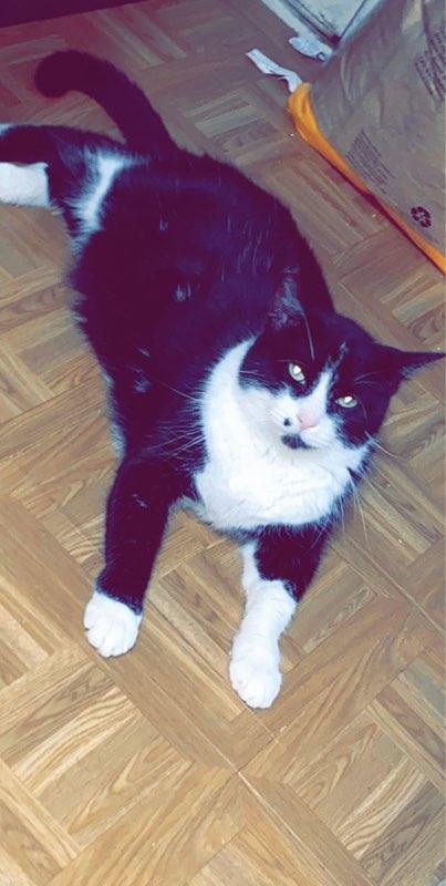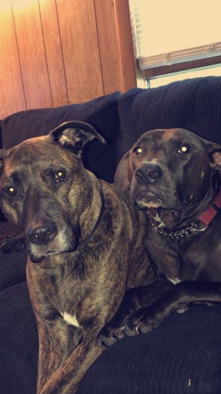 Ok the black and white cat was found in my yard (Ollie), the solid gray cat was found at 1 day old under a neighbor's porch and bottle fed (Milo) the Maine coon mix is rescued after 1 1/2 years in a cage at humane society.(Elmo) the Brindle dog is a Plott hound and was a humane society rescue. (Hunter) and the Chocolate Staffordshire terrier is a rescue(Capone). 2 ball pythons are Apollo and Elizabeth and the Redtail Boa is Damien.